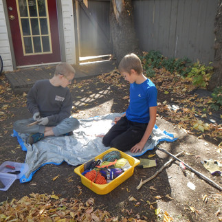 Here are some images from our work this week! We are deep into fairy houses, and will take a field trip next week to see someone else's village! Check your email for the new pick up spot next week. We decided we wanted to learn a new knot every week, and one kind of cut for carving. Barett and Finn are creating Aztec weapons, and Evan is using woodworking to create tiny furniture. Daisy, Kayley and Katie loved the squash carving, using natural materials to fill out the house.