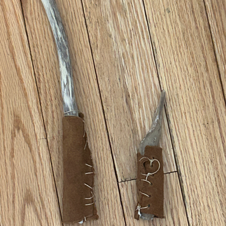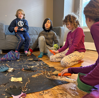During lunch we read Greyson's Skinwalker story that impressed us and gave us the creeps. Well done Greyson! After lunch we opened up an indoor tool circle. The Foxes were filled with inspiration and eager to make weapons. Check out their beautiful workmanship. Leather work takes loads of patience.