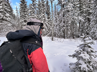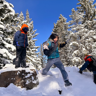 We took the Foxes to the mountains and for a day they became the Arctic Foxes. Their stamina for the cold exceeded our expectations. Although at times it was difficult for a few of the Foxes, the others rallied around them to encourage them to go on in our late morning hike. We did a loop of the Big Kidd trail, which took more than 2 hours. Ask your Owl what they saw; any tracks, any wildlife? What did they feel? Was it hard? What was their favourite part to the hike. There were lots of joyful hurrahs when we started going down hill in the fresh powder.