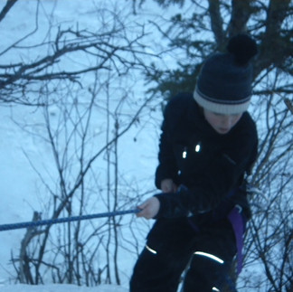 The trip to the ice caves was educational; Ms. Rikia told us the ice needed to be 4 inches for one person to go on it, and 6 for a group to go on it. So we checked the creek ice, and found the sunny parts were too slushy. The shading parts, however, were thick enough for us! We followed the creek to the ice caves, which were magical.