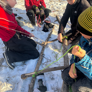 We started the day with trying out some big builds. Although they weren't all totally successful, we are learning and have ideas to move forward. We made a ladder where every Fox contributed by lashing a rung. We learned some ways to make it easier....like measuring lengths first so you don't have to use the saw to even things out. We also tried to make a pole swing. Although it didn't work quite as expected we have some ideas to make it better.