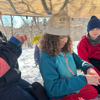 After making scientific recordings in our journals we moved to some needed free time and headed to the ice mound by the curling club for lunch. We were on our way to the wetlands, but the Foxes had plans for the ice mound. There was a lot of discussion, jostling of tasks, dedicated work and the making of beautiful glitter ducks. Nearing the end of the day the Foxes made it through and connected two tunnels! The excitement was heard all over Sunnyside. As the Foxes dug through the ice they worked on their gross motor skills as well as their organization, debate, social and logic skills!