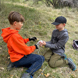 After a group game we could not keep them away from their forts any longer. Some of the foxes worked on pulley systems and stabilizing their forts, while others worked on protecting their forts. We could say that they all worked on how to include one another and be open to be flexible enough to include each others ideas. It seems that there are three forts on the rise and they all have a different way of interacting with one another. During this time the Foxes also practiced their knots while fort making and taking prisoners.
