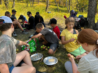 After picking apples from the tree and off the ground, we played a pretty epic game of capture the flag. Before lunch the Foxes were challenged to make animals out of the fallen apples from the ground. There was a Giraffe, Cat, Spider, a Coyote and a fellow named Billy.