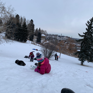 We walked up to the 'Teardrop' area at the top of the bluff and had fun sledding and rolling down the hill. Olive, Abigail and Miss Megan lasted the longest sledding.