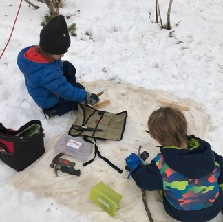 With all the snow on the ground, over the next few weeks we are hoping to be able to observe tracks and signs of animals who live on the bluff so today we played a game getting to know which creatures live in the forest. We also honed our observation skills following trails to find stuffy dog, bear and wolf. In two groups the children set trails that the other group was to follow. Ask your child what they looked for to find the next clue on the trail and how easy this was to see.
