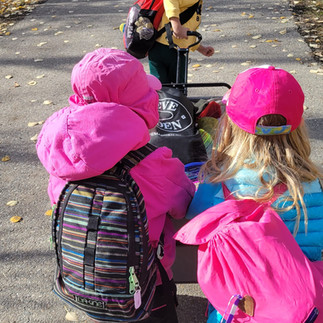 During todays class the Nuthatches got to try a new zipline that another class had perfected. It was fun trying something new and maybe a little scary at first. Everyone did a great job cheering each other one, bringing the zipline back after their turn and waiting. We needed a few testers to see if we would drag on the ground and if the height was ideal! The nuthatches came up with different ways to ride the zipline and were always trying new methods! Then we spent some time carving and decorating pumpkins, trying out different tools and techniques.