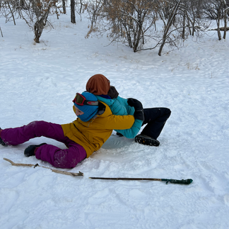 With the fresh snow on the ground we headed off to find some good tobogganing. Bean showed us to her favourite hill right behind the Sunnyhill Coop. Huxley perfected riding on one ski while the rest of the Owls took runs with chicken feed bags and clear plastic. The class decided to work on an existing jump, which included a luge kind of lead up to make sure you hit the jump right. Unfortunately the snow just wasn't that fast and only Machen was able to actually get over the jump.