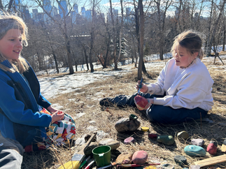 For the afternoon we headed to Sammies park to make fires, char cloth and yummy roasted apples. The Owls 'blew' me away with their fire making skills! Everyone successfully made a fire in groups of two or by themselves in the gusting 40-60km winds! I believe one fire was started with one match even. I am so impressed. Once the fires were made and joined together we made char cloths to use as a fire starter. It was super cool to see how they were made. We will see now how they will lite. Ask your Owl about the process.