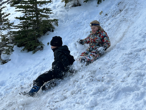 After lunch the Owls spent more time exploring the cave and sliding in the snow alongside the cave. On the way back we made some stops to climb some boulders, play camouflage in a mossy wonderland and throw rocks into a valley.