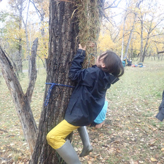 As we collected mint for a tea, we discovered the reeds from the cattails...which enhanced our grass weaving by adding stronger cord. The zipline was also built today, and the children took turns testing it out, and building it to their satisfaction.