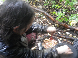 Our afternoon found us considering the rain, all the water, and what we could do with it...what we saw was mud! We voted to go to the rope climb and try some mud sliding, while Rikia, Julian and Bean made some applesauce from apples and pears we picked last week. Don't worry, Rikia and Bean also went mud sliding! Thank you for the all the laundry you did this week! It was a good time to cozy up with some cinnamon apple sauce. Our knife skills are being used as well as our outdoor cooking skills, and respect of the hot stove!