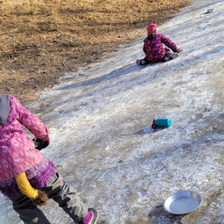With such an icy pathway we decided to build and compete in stuffie sled building. Trying to slid our stuffie the farthest without them falling off. We had some very creative approaches and found that although the slipperiest material was great it was hard to keep the stuffies on! Ask your Rabbit which sled they made?
