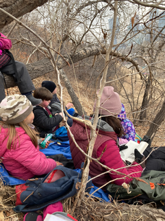 We then hiked up to a nice sheltered spot in the trees to have our snack and continue reading the book "a wolf called wander."