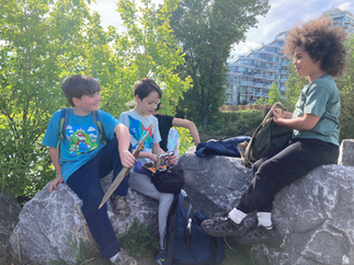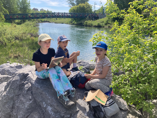 Following our games, we found a nice spot by the river to eat our snack and continue to watch the geese and the goslings. We then moved on our craft for the day, which was embroidering the felting projects that we have been working on for the past couple weeks. This was a bit of a tricky activity, but everyone was able to give it a try.