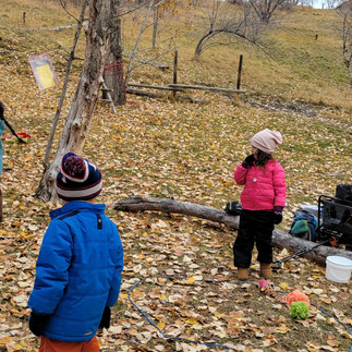 We were very busy this class trying to get to all the things we wanted to do! The Red Squirrels helped me set up the zipline, which required lots of testers. We would try different heights and slope of the rope to see which one kept us from dragging on the ground. After several attempts we were able to find the sweet spot and cruise down on the zipline! We got creative with the mini pumpkins, using different techniques to decorate or carve our pumpkins. We played a new game that required the red squirrels to be quite and sneaky as they moved around the forest! Next class we will do soap carving and build a structure for us!