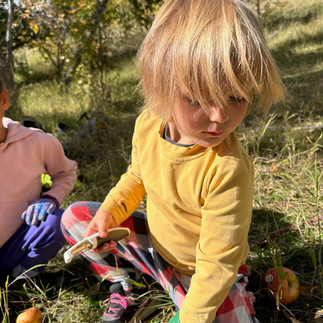 During free time the Squirrels mostly spent time in the kitchen, a few explored the tools or collected sticks or stayed making leaf necklaces but by the end everyone ended up working together on a recipe. We observed the Squirrels dividing up tasks, communicating ideas and offering up jobs to the new comers joining. Everyone seemed to be involved, ask your Squirrel what role they played.